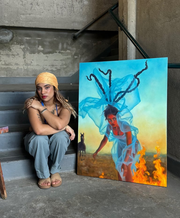 I’ve been painting since I was a child. My process now is driven by story and psyche. Each piece is a confrontation with the parts of myself I don’t always understand, shaped into something beautiful, strange, or still. I paint to see myself more clearly. I paint to feel peace.